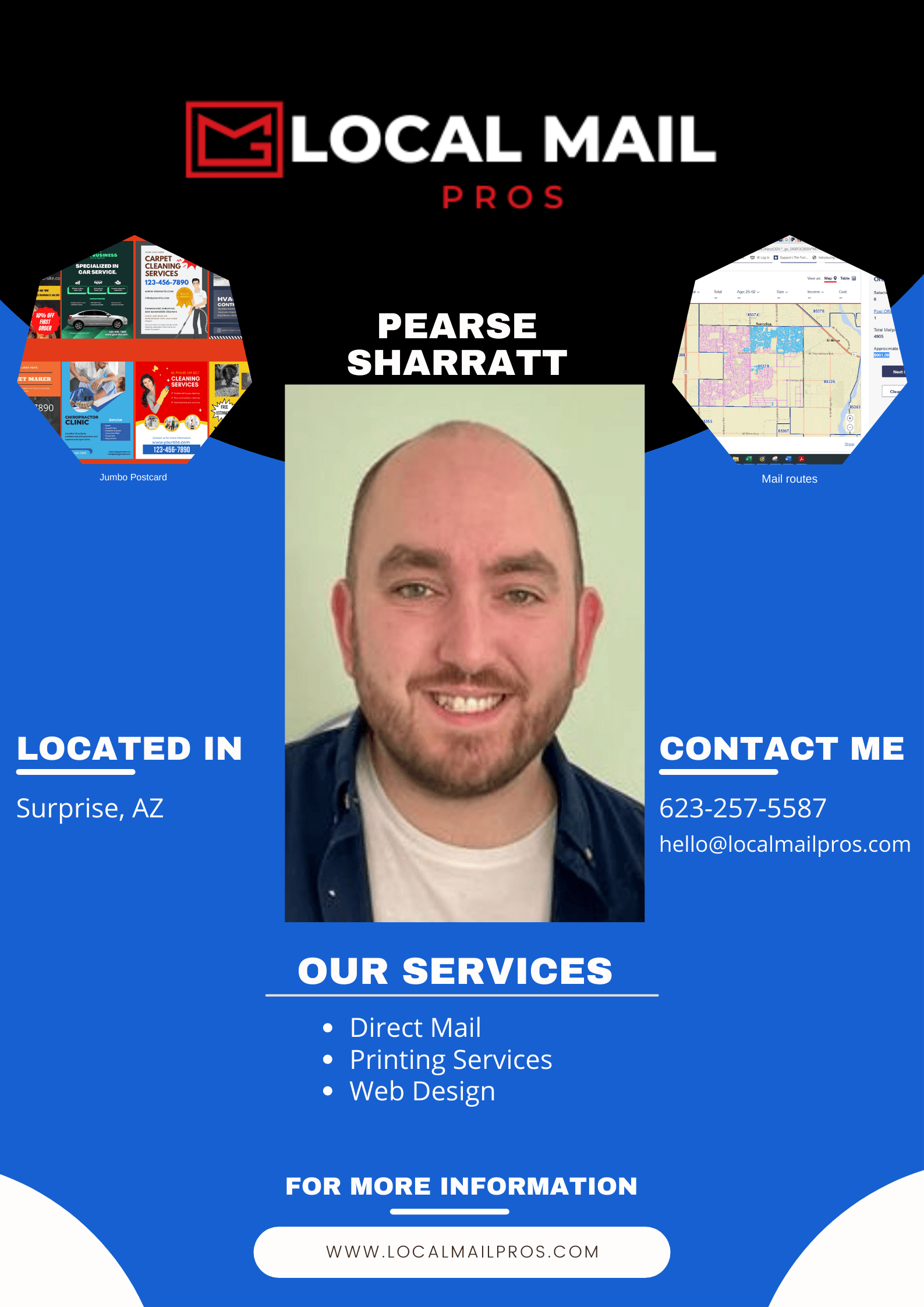 Together, Pearse and Char formed a partnership to create Local Mail Pros. It is Veteran owned. Their combined level of business experience is over 25 years. The industries they have and continue to serve are in the health and wealth, home services contractors, and the public sector arena. The core services they utilize to help businesses expand and grow are deeply rooted in digital and direct mail marketing.